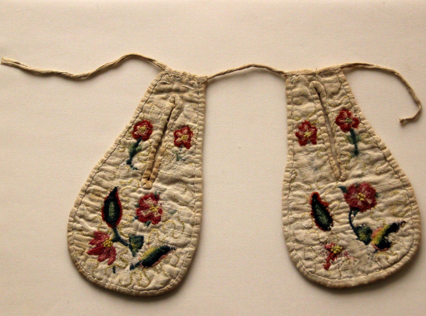 נעלי אישה מן החצי השני של המאה ה-18, עשויות פשתן, משי ועור, ומאחוריהן זוג כיסים מיניאטוריים רקומים על פשתן. מוצגים בגלריית ווקר בליברפול. #מהתלבשובמוזיאון –