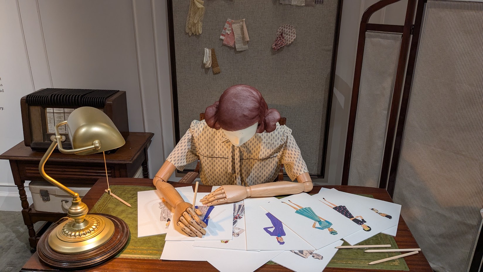 הסיפור והאיורים הזכירו לי את אחת התצוגות בתערוכת "גיבורות" במוזיאון העיצוב חולון, שאצרה יערה קידר. ואכן, ליטל ספיבק הרצתה על המחקר שלה ביום העיון לכבוד פתיחת התערוכה ב-2025. הפרויקט ״לתפור היסטוריה מתוך השואה״ ממחיש את סיפורה של מעצבת האופנה היהודייה הדי סטרנד. בני הזוג סטרנד נספו במלחמה, אך עדות לכישרונה של הדי נשמרה כל השנים במעטפה שנשלחה לארצות־הברית במסגרת בקשת הגירה. במוזיאון היהודי של מילווקי העירו לחיים את עיצוביה, ובישראל הופקו לפיהם שמונה מערכות לבוש נאמנות לגזרות, לטכניקות ולחומרי הגלם של התקופה. לצד חפצים מקוריים, התערוכה מציגה שחזורים ייחודיים של מערכות לבוש ושל פריטי אופנה לפי האיורים של הדי ומעמידה אותה בסצינות מחיי מעצבת ויצרנית אופנה, כולל תווית מותג עם חתימתה של הדי.