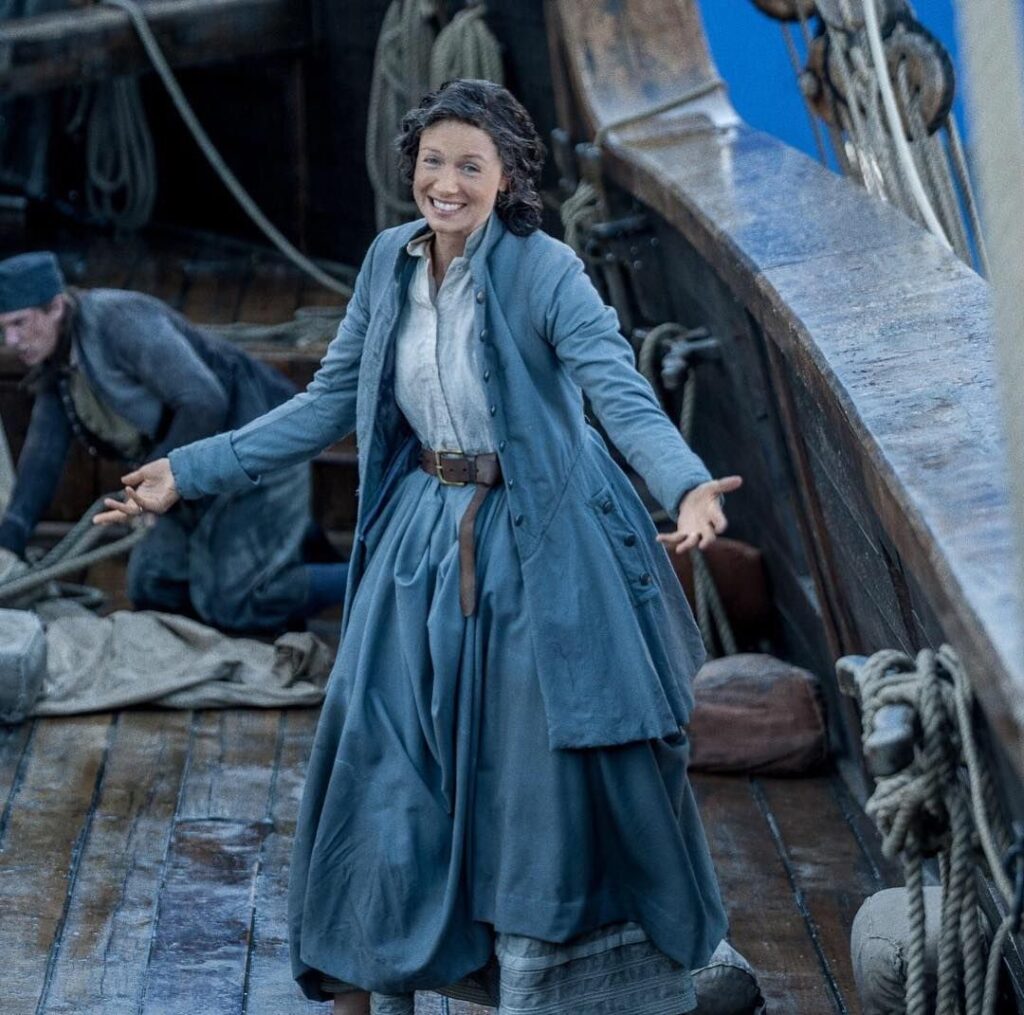 הדמיון הוא לא רק בצבע הכחול הבהיר, אלא בדיוק בפגמים: מעצבת התלבושות של הסדרה, טרי דרסבך, הציגה את המקומות שבהם התפרים עקומים, הכפתורים לא זהים ועוד כל מיני דברים לא מדויקים, כיוון שקלייר איננה תופרת מקצועת, וגם אני לא.